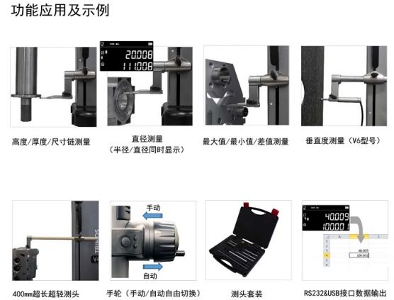 Trimos高度規在垂直測量領域已有40多年歷史。V5、V6測高儀革命性的採用手動、自動一體化設計,客戶再也不用糾結於是採購手動機還是自動機了。新型Trimos高度規結合Trimos公司40多年生產和研發技術結晶,操作更加簡便、品質穩定可靠,大屏液晶顯示,可滿足客戶各種現場測量的要求。